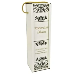 Oryginalny prezent na rocznicę ślubu Pasuje do butelek 0,5L – praktyczne wymiary Ażurowe zdobienia i jubileuszowy grawer Gotowa do wręczenia – opakowanie foliowe w zestawie Produkt polski – wysoka jakość wykonania