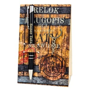 Metalowy długopis z grawerem "Super Tata" Brelok drewnopochodny – kolorowy nadruk, średnica 5 cm Kolorowe opakowanie + folia ochronna Gotowy do wręczenia prezent dla Taty Idealny produkt dla hurtowni, kwiaciarni i stoisk z upominkami Dostępny w sprzedaży hurtowej