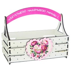Uniwersalne zastosowanie: idealny do tworzenia własnych zestawów prezentowych – od kwiatów po kosmetyki i słodycze. Materiał: wykonany z trwałego materiału drewnopochodnego, który jest lekki, ale wytrzymały. Estetyka: kolorowy nadruk z życzeniami, który sprawia, że koszyczek od razu przyciąga wzrok i wyróżnia się na tle innych produktów. Wymiary: 17 x 11 x 20 cm – kompaktowy i funkcjonalny format, który sprawdza się w wielu zastosowaniach. Pakowanie: zapakowany w przezroczystą folię, dzięki czemu jest gotowy do natychmiastowej sprzedaży. Produkcja: produkt polski, stworzony przez firmę Verde Factory – cenionego producenta upominków dekoracyjnych.