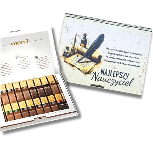 Rozmiar: 22 × 17 × 2 cm – pasuje do Merci Materiał: biały materiał drewnopochodny Kolorowy nadruk z podziękowaniami Gotowy do wręczenia – zapakowany w folię Produkt polski – wyprodukowany przez Verde Factory