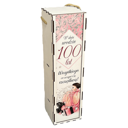 Skrzynka na butelkę dla kobiety z okazji urodzin. Kolorowy nadruk z życzeniami na urodziny. Pudełko pomieści butelkę wina lub innego alkoholu o pojemności 0,5 lub 0,7 l. Pakowane w folię. Wymiary 33,5 x 9,5 cm symbol produktu - 3311ZEGAR100K