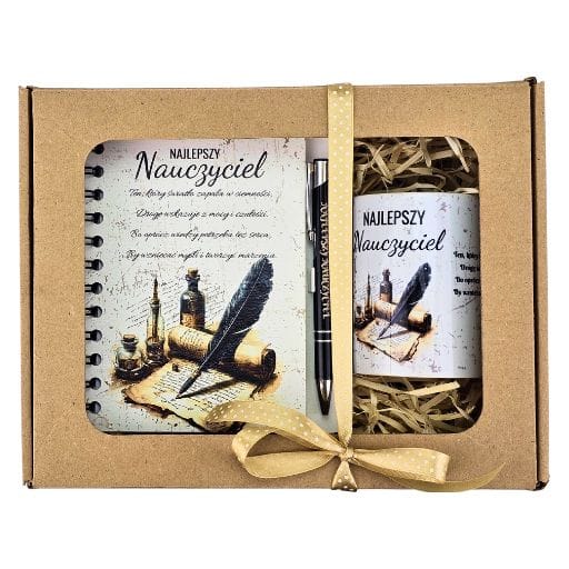 Zestaw: kubek ceramiczny + notes Wymiary zestawu: 25 × 15 × 10 cm Opakowanie z okienkiem i dekoracyjną wstążką Kolorowy nadruk na kubku Gotowy prezent – nie wymaga dodatkowego pakowania Produkt polski – wykonany z dbałością o detale