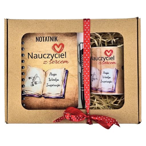 Zestaw: kubek ceramiczny + notes Wymiary zestawu: 25 × 15 × 10 cm Opakowanie z okienkiem i dekoracyjną wstążką Kolorowy nadruk na kubku Gotowy prezent – nie wymaga dodatkowego pakowania Produkt polski – wykonany z dbałością o detale
